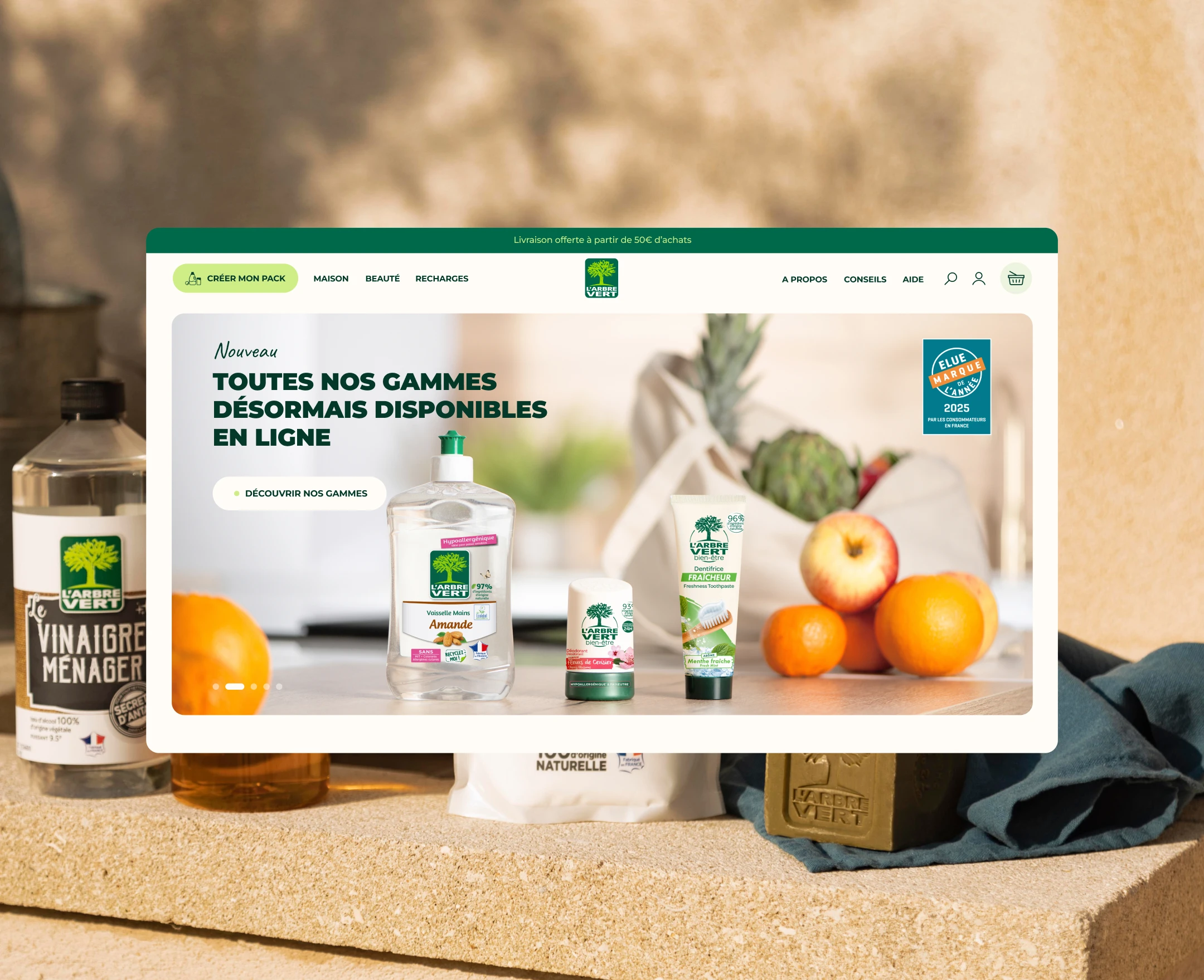 Marque engagée et incontournable dans les foyers Français grâce à ses produits d’entretien respectueux de l’environnement, L’Arbre Vert a choisi d’élargir son territoire en lançant son offre e-commerce. L’enjeu : Rendre la marque disponible en ligne et révéler toute la transversalité de son univers, des produits d’entretien aux gammes beauté et bien-être.